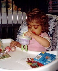 Jayli accidentally learned how to cross her fingers this day. If you look close, you can see that she is playing with her fingers. |