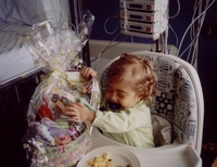 This basket came from the Easter Bunny himself... He visited the hospital on Easter Sunday and gave all of the kids a treat. The basket had tons of fun things in it! |